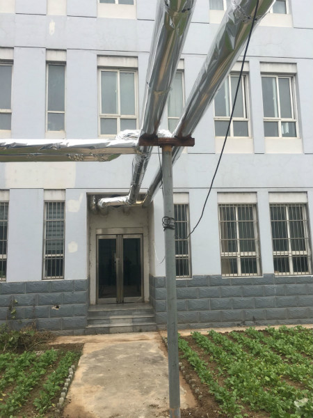 市政府供暖供冷室外管道经过长期烈日暴晒,雨水侵蚀,风刮撕裂,整体外部反光膜基本全部脱落,保温棉裸露在外面,11月9号综合服务科对管道进行包装养护,高空作业,安全施工,顺利完成,新的保温反光膜有效反射太阳直射,保温,阻雨,防腐蚀,有效节能百分之三十。