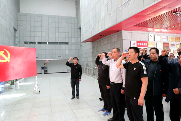 活动前,佩戴党徽老党员和部分村民代表在村委院内,举行了简约而不失庄重的升旗仪式。“我志愿加入中国共产党,拥护党的纲领,遵守党的章程,履行党员义务,执行党的决定,严守党的纪律,保守党的秘密…… ”活动中,老党员们在吉鸿昌将军雕塑前重温入党誓词,并向党旗庄严宣誓。