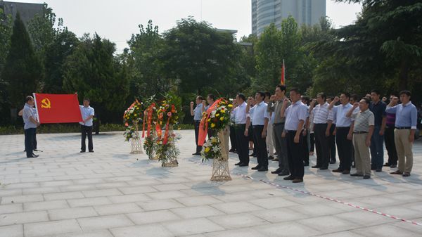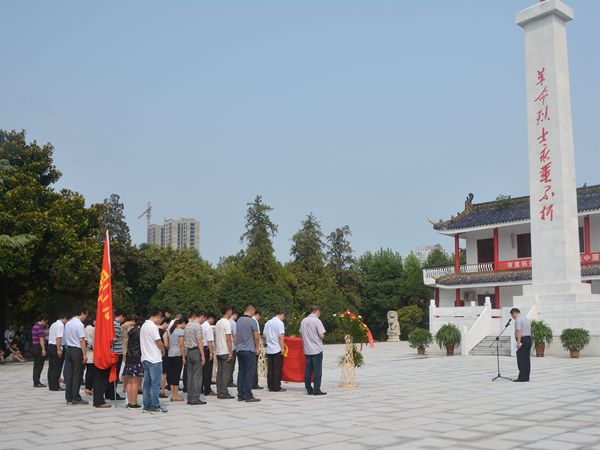 在中国人民抗日战争胜利暨世界反法西斯战争胜利70周年来临之际,为缅怀革命先烈功绩,深化爱国主义教育,促进精神文明建设发展,8月27日上午,周口市机关事务管理局在革命烈士陵园开展了缅怀先烈活动。(李东升 摄)